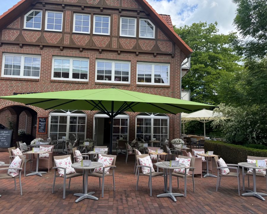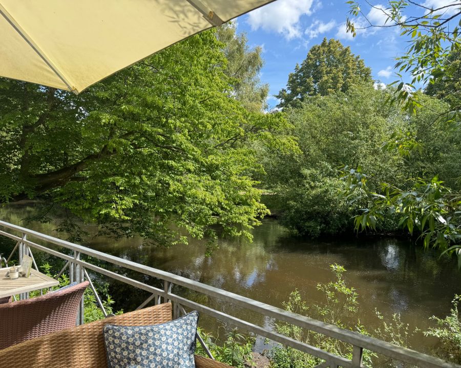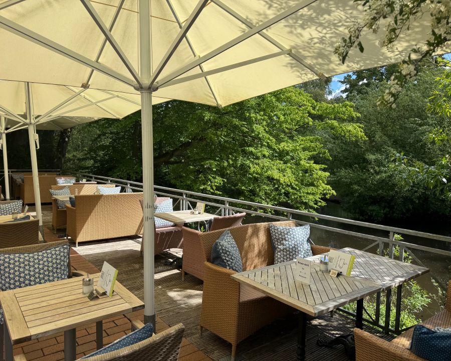 Unsere beiden Terrassen – wahlweise mit Blick auf die idyllische Ilmenau oder inmitten der charmanten Fußgängerzone.